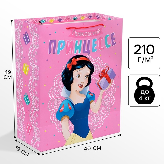 Пакет подарочный "Прекрасной принцессе" 40х49х19 см, упаковка, Принцессы