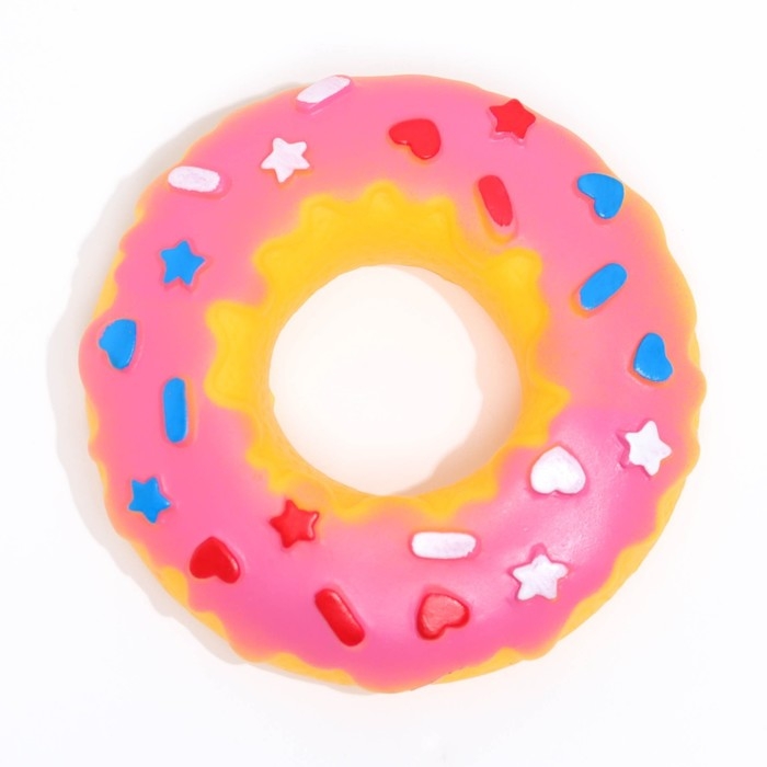 Игрушка пищащая "Пончик" для собак, 8,5 см, розовая