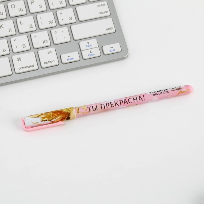Ручка шариковая синяя паста 0.7 мм «Ты совершенна» пластик с тиснением на корпусе