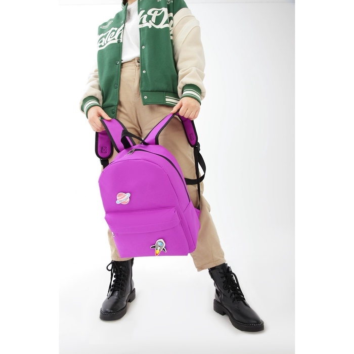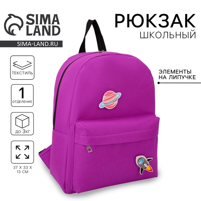 Рюкзак школьный текстильный «Космос», 37 х 33 х 13 см, с липучками, фиолетовый