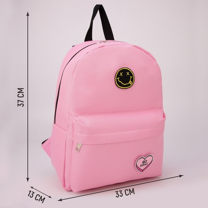 Рюкзак школьный текстильный «Сердце», 37 х 33 х 17 см, с липучками, розовый