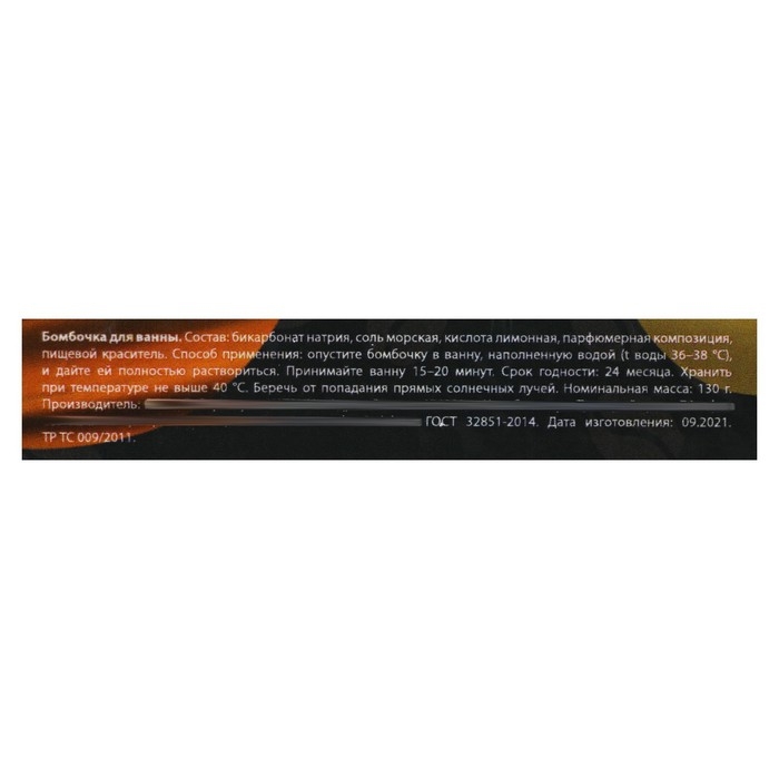 Состав: бикарбонат натрия, соль морская, кислота лимонная, парфюмерная композиция, пищевой краситель.