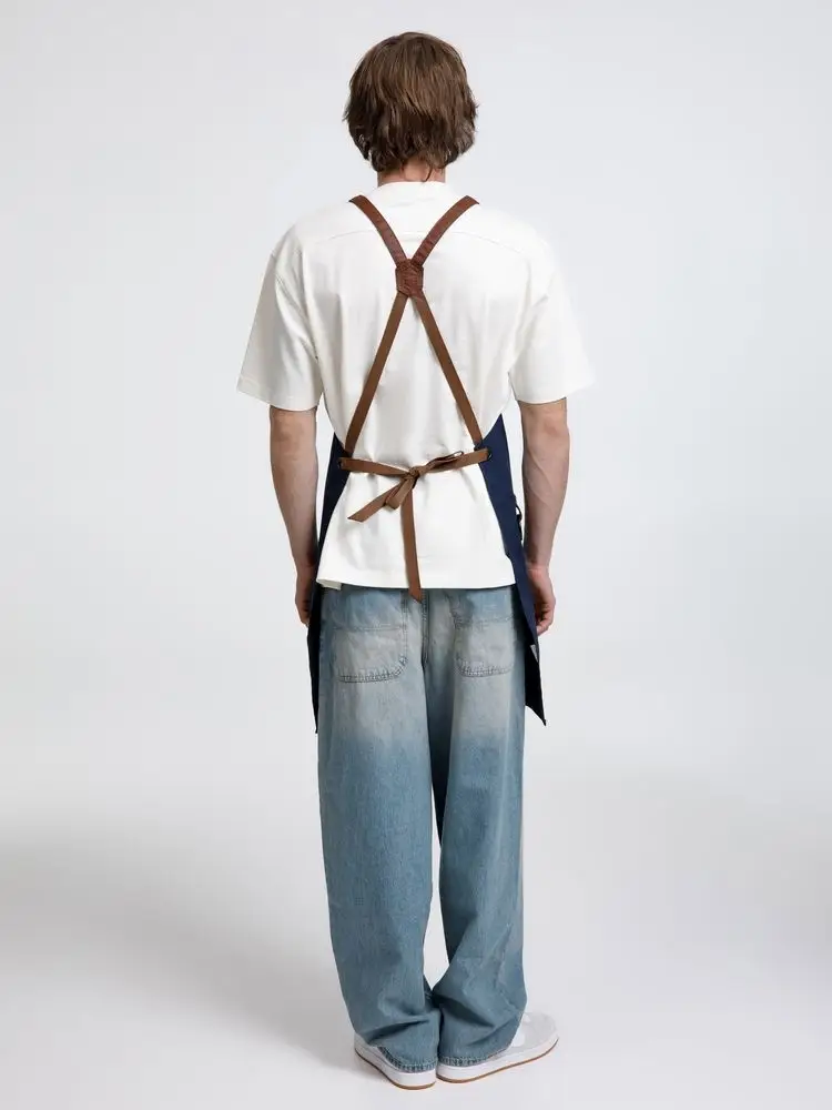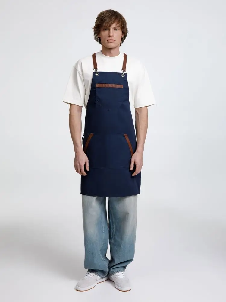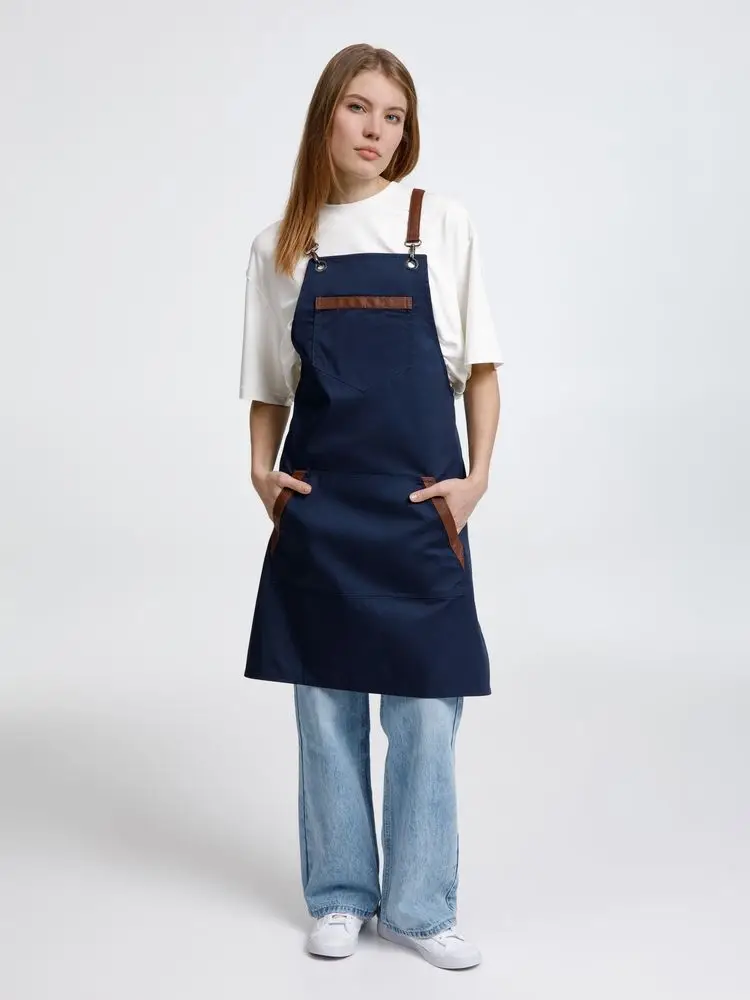 Функциональные карманы на груди и подоле эффектно украшают фартук, изготовленный из качественной дышащей плотной износостойкой ткани. Благодаря динамичным крестообразным лямкам он отлично сидит как на мужской, так и на женской фигуре. Кроме того, съемные лямки упрощают процесс стирки в стиральной машине.
