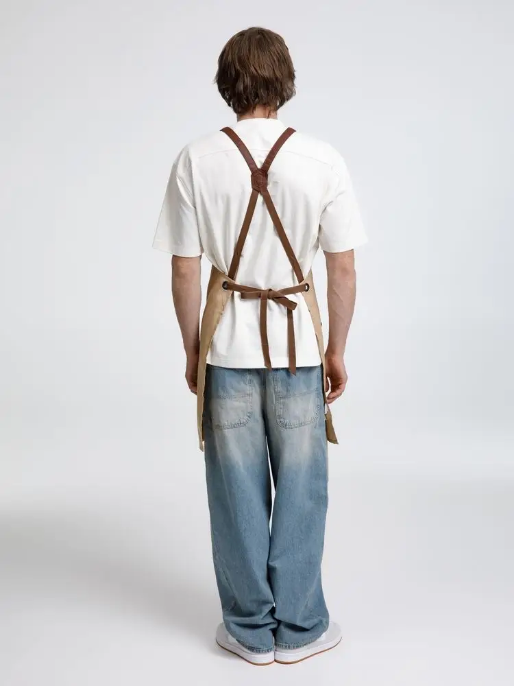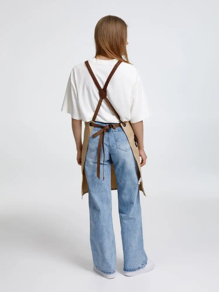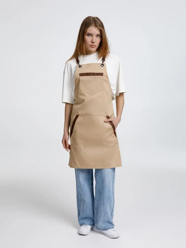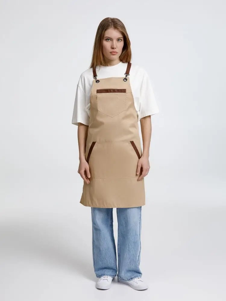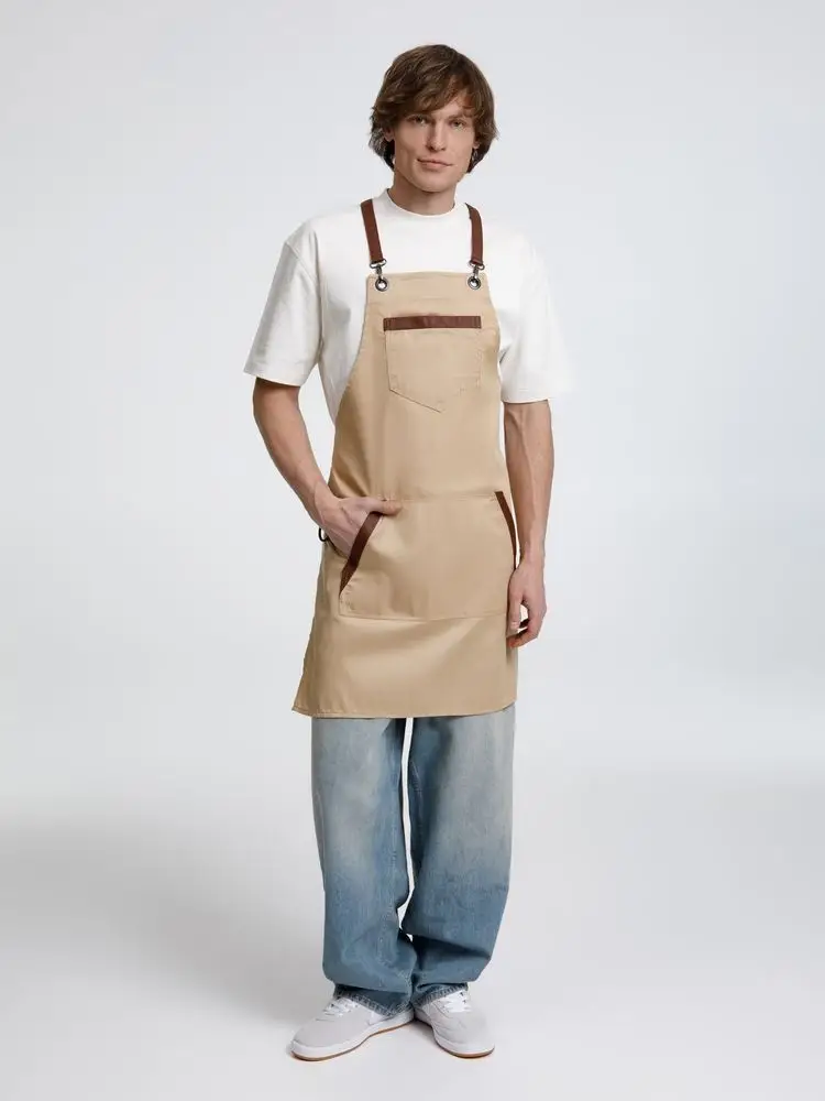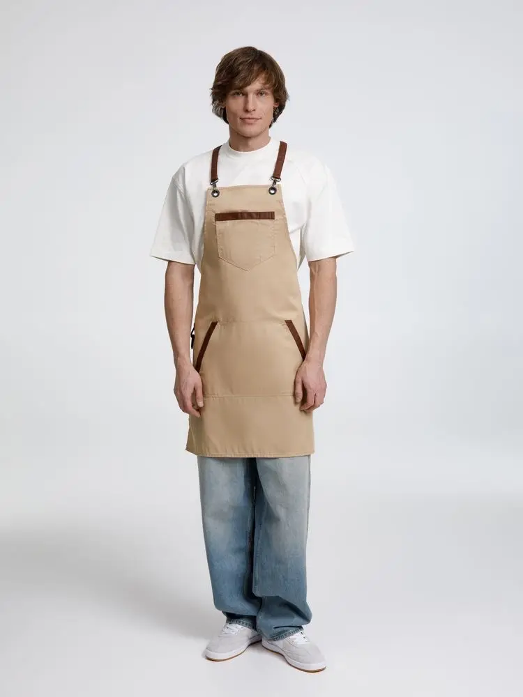 Функциональные карманы на груди и подоле эффектно украшают фартук, изготовленный из качественной дышащей плотной износостойкой ткани. Благодаря динамичным крестообразным лямкам он отлично сидит как на мужской, так и на женской фигуре. Кроме того, съемные лямки упрощают процесс стирки в стиральной машине.