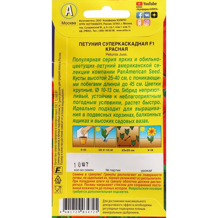 Семена Цветов Петуния "суперкаскадная", F1, красная, драже в пробирке,10 шт