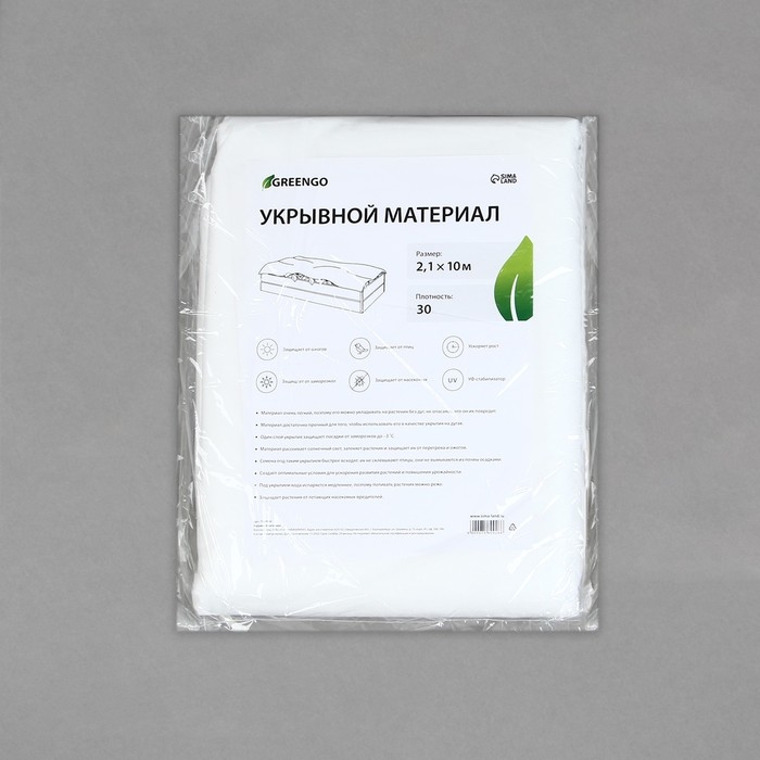Материал укрывной, 10 × 2,1 м, плотность 30 г/м², белый, спанбонд с УФ-стабилизатором, Greengo, Эконом 30%