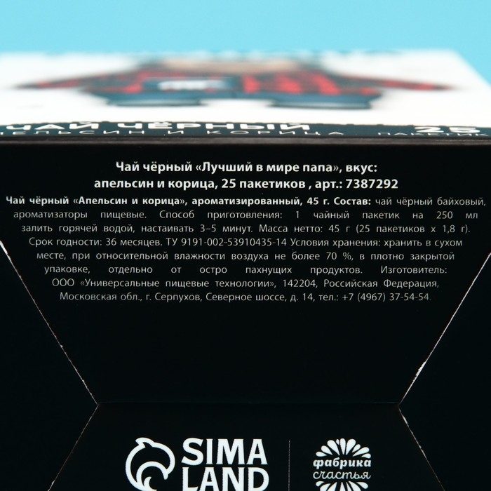 Чай чёрный «Лучший в мире папа», вкус: апельсин и корица, 25 пакетиков х 1,8 г.