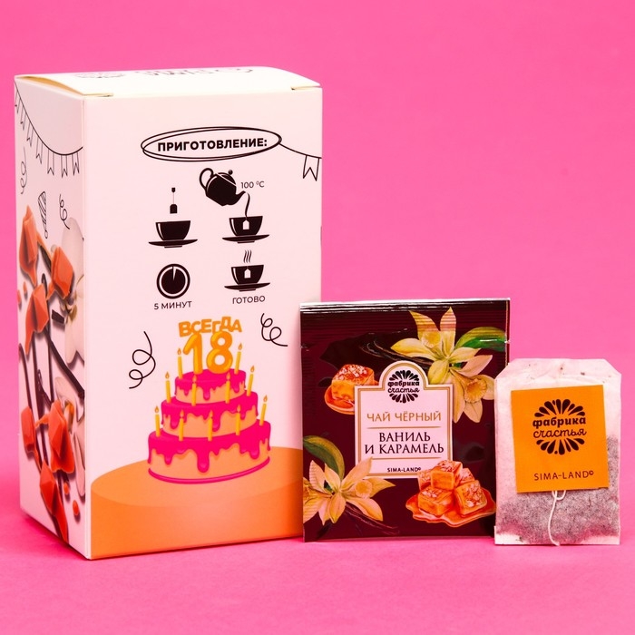 Чай чёрный подарочный «С днём рождения»: ваниль и карамель, 25 пакетиков х 1,8 г