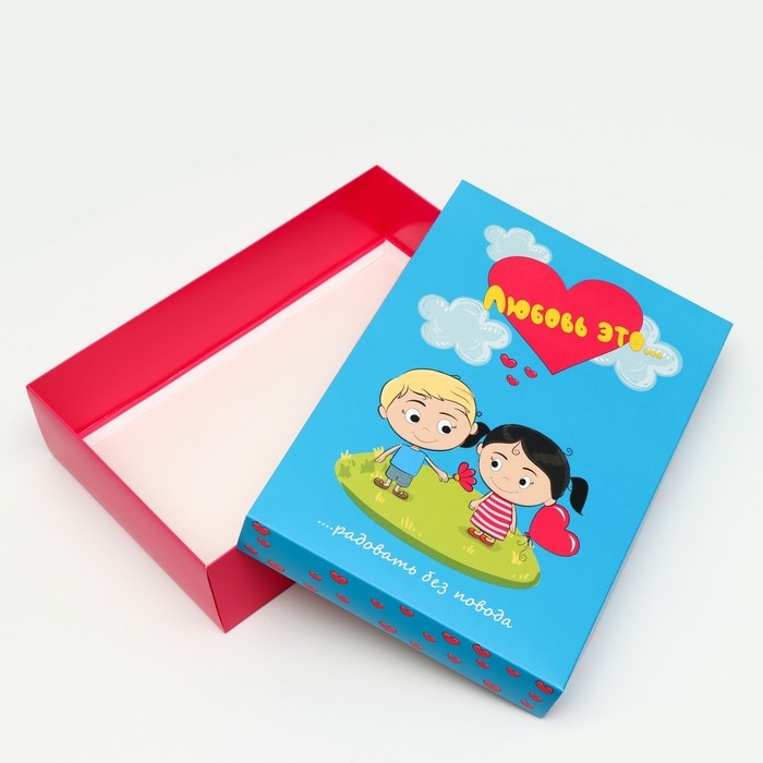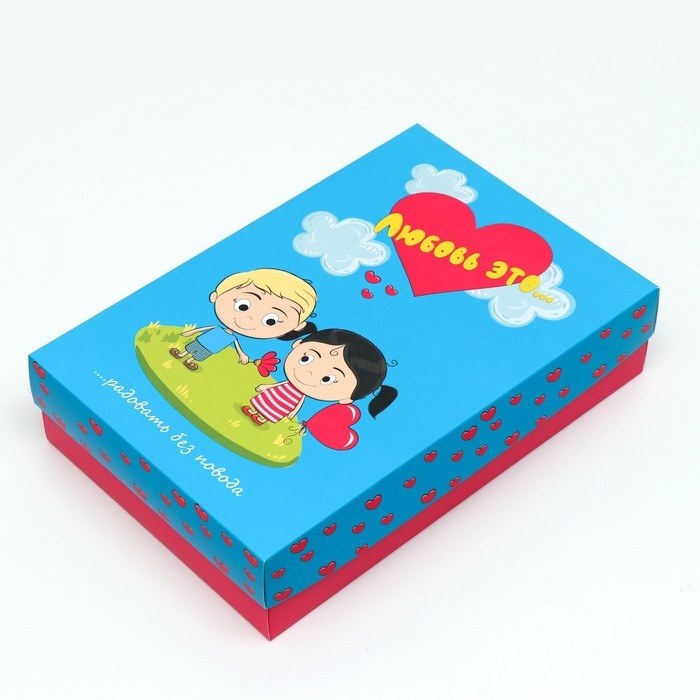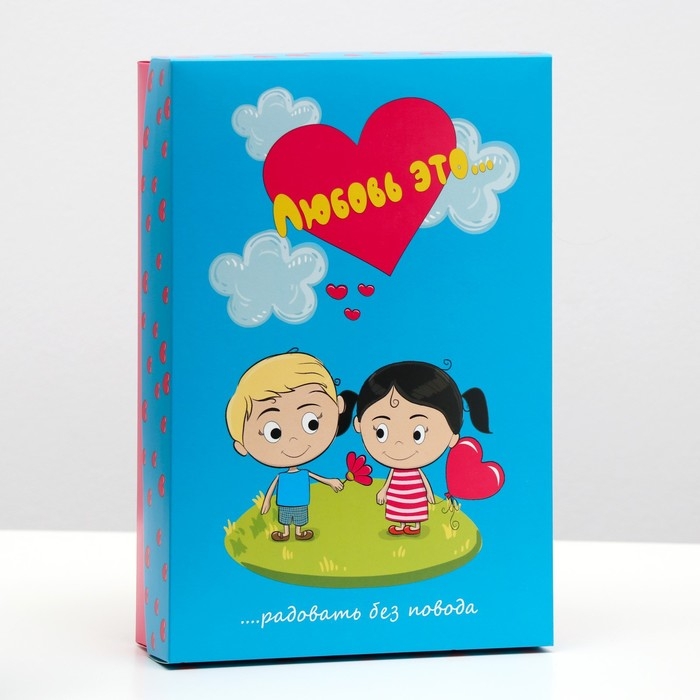 Коробка подарочная, крышка-дно, сборная "Любовь это...", голубая, 30 х 20 х 7 см