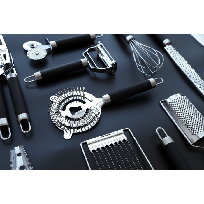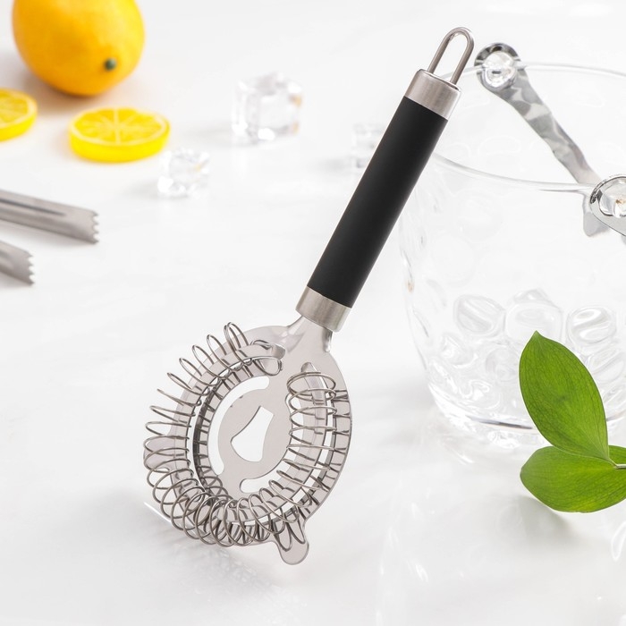 Стрейнер — профессиональный инструмент, который есть в любом баре и без которого не обойдётся ни один бармен, будь то новичок или знаток своего дела. Прибор предназначен для отделения крупных частиц льда, семечек или фруктов при переливании коктейля из шейкера в бокал.