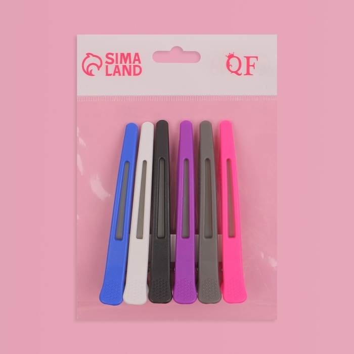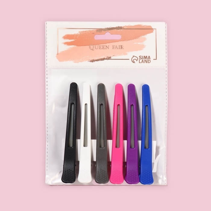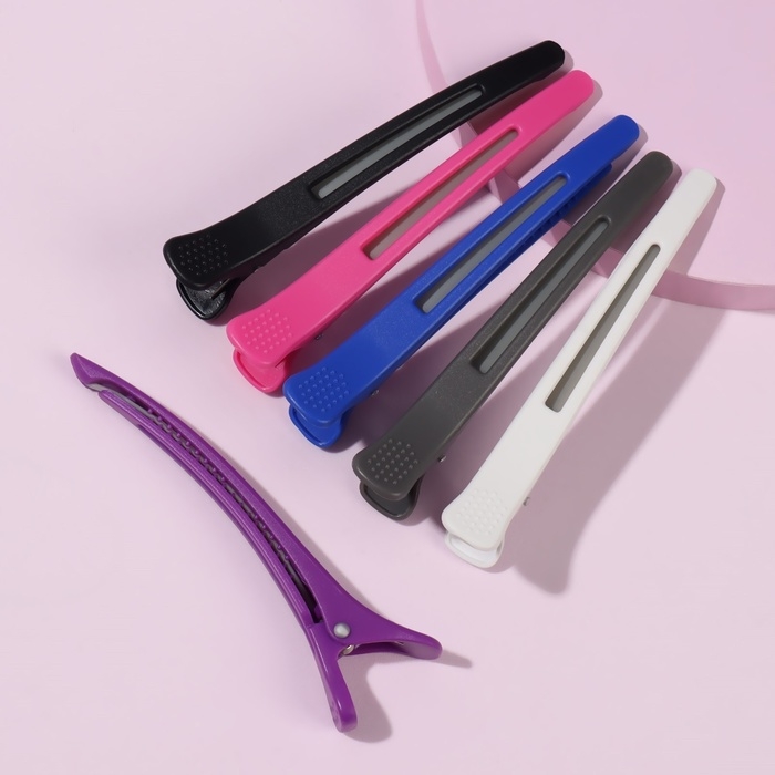 Зажимы для волос, набор - 6 шт, 10 см, цвет МИКС