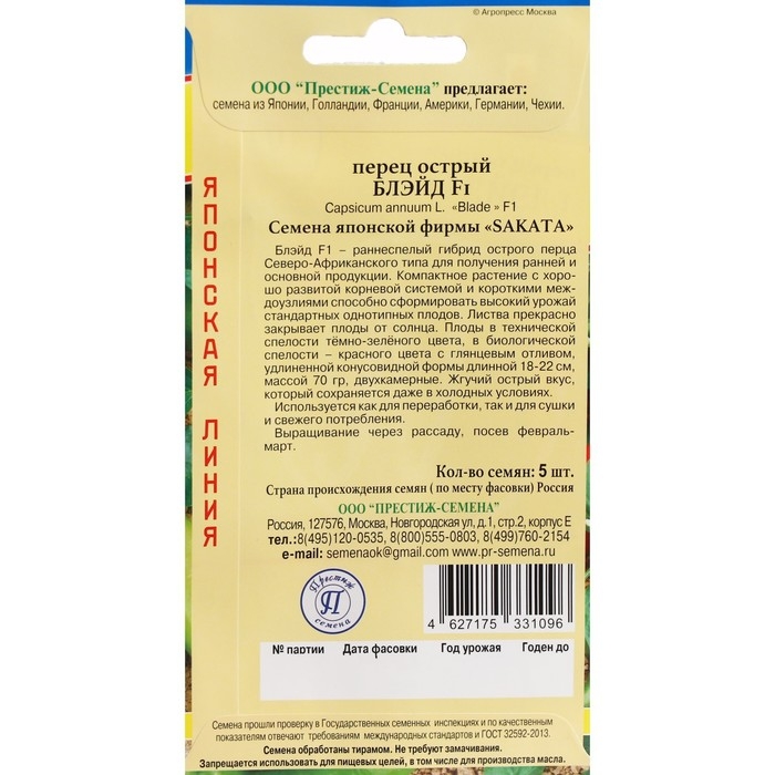 Семена Перец острый "Блейд", F1, 5 шт