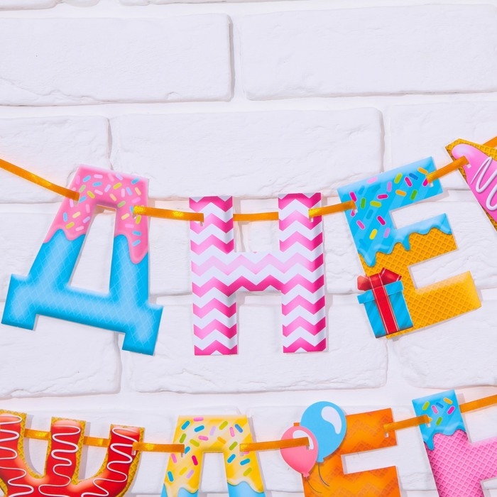 Гирлянда на ленте "С Днем Рождения!", сладости, дл.250 см., 200 гр/кв.м