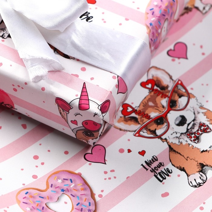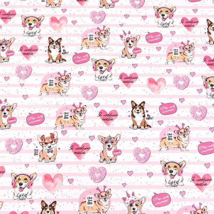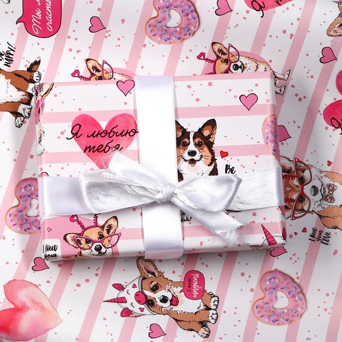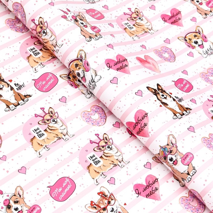 Бумага упаковочная глянцевая "Корги", 70 × 100 см,1 лист