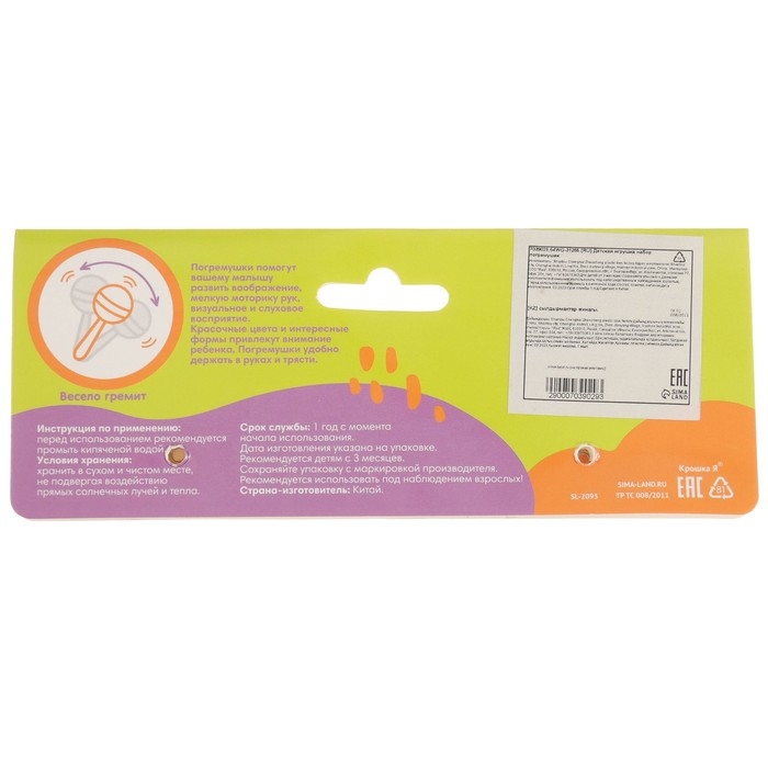 - Легкость и удобство использования: Наши погремушки имеют оптимальный размер и форму для маленьких ручек ребенка. Они легко ухватываются и удобно держатся, позволяя малышу самостоятельно исследовать и играть с ними.