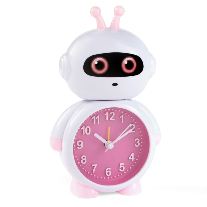 Часы с будильником представлены в ярком дизайне в форме милого робота, они отлично впишутся в ваш интерьер. Интерьерные часы станут прекрасным декором для дома и дачи, их можно поставить как на прикроватную тумбочку в спальне, детской комнате, гостиной так и на стол или на комод в зале, холле или на кухне. Будильник настольный имеет кварцевый механизм, который гарантирует высокую точность хода. Часы настольные обладают громким будильником, ребенку и вам будет комфортно просыпаться, на работу и в школу. Будильник на батарейках не требует частой замены батареек благодаря экономичному механизму.