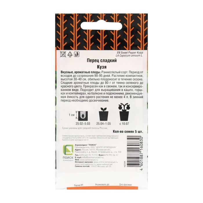 Семена Перец сладкий "Кузя", 5 шт