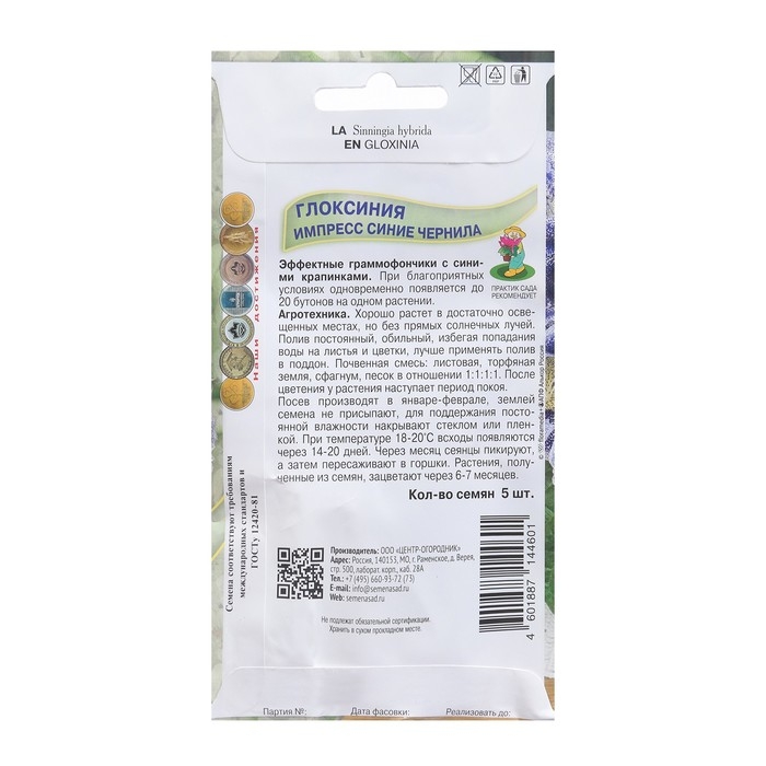 Семена цветов Глоксиния "Императрица", 4 шт.
