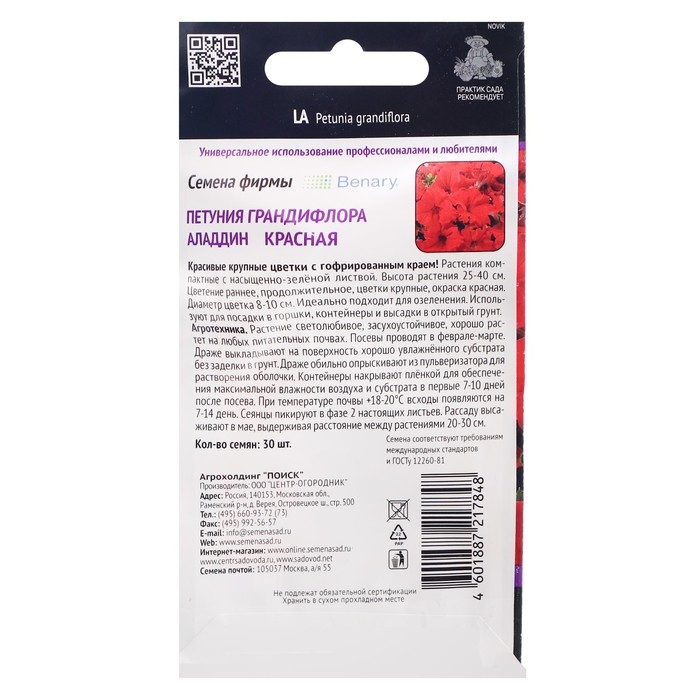 Семена цветов Петуния грандифлора "Аладдин Красная", 30 шт.