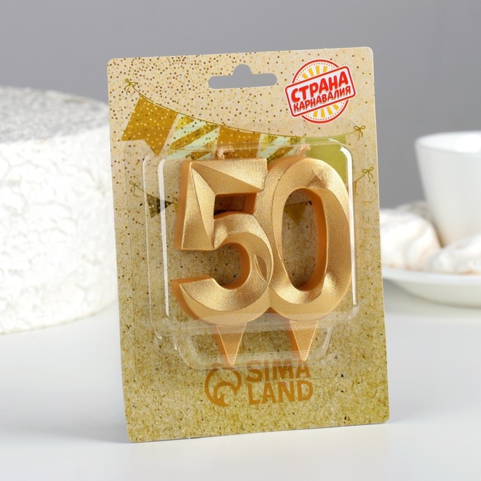 Свеча в торт юбилейная "Грань", цифра 50, золотой металлик, 6,5 см