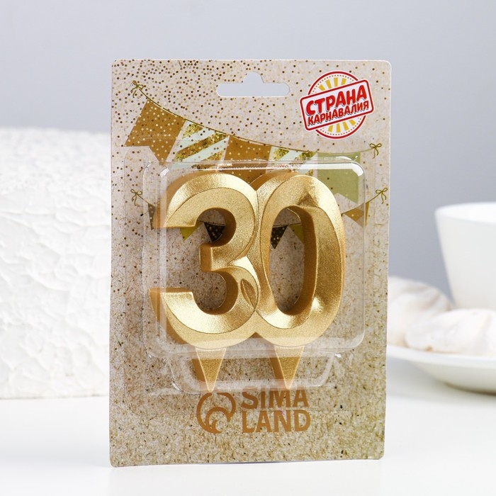 Свеча в торт юбилейная "Грань", цифра 30, золотой металлик, 6,5 см