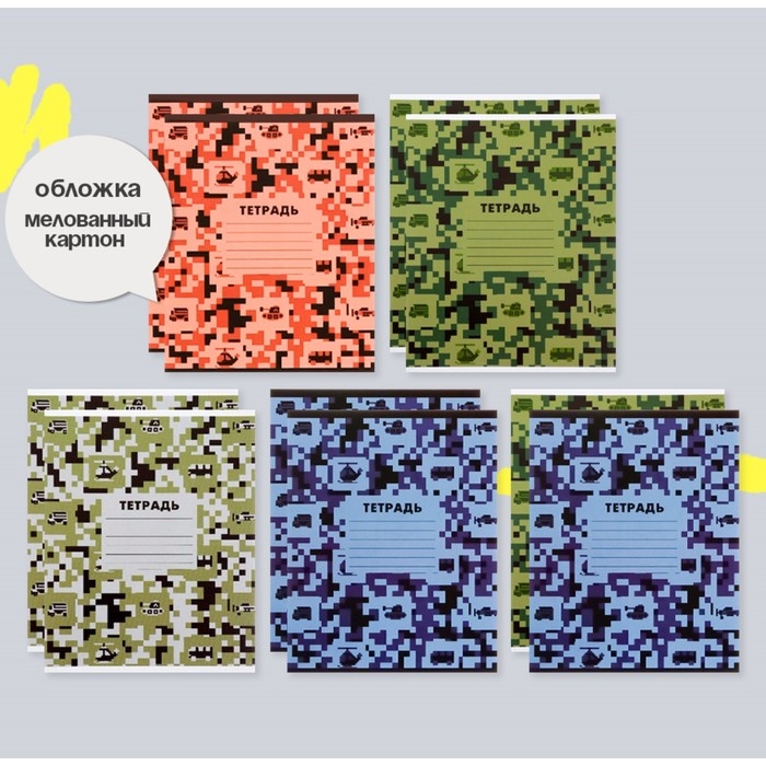 Комплект тетрадей из 10 штук, 12 листов в клетку Calligrata "Пиксели", обложка мелованный картон, ВД-лак, блок офсет, 4 вида по 2 штуки + 2 повторяющиеся