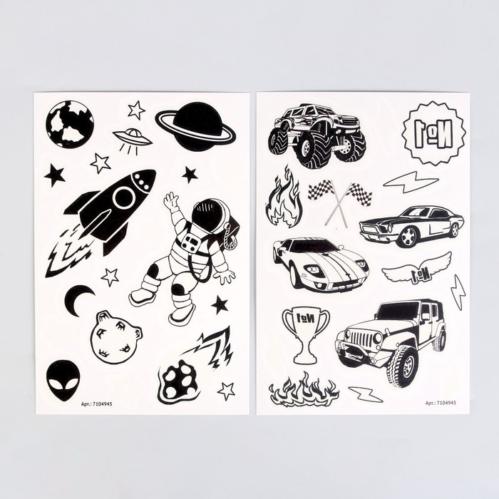 Набор детских татуировок, 4 шт.: машинки, пираты, роботы, супергерои