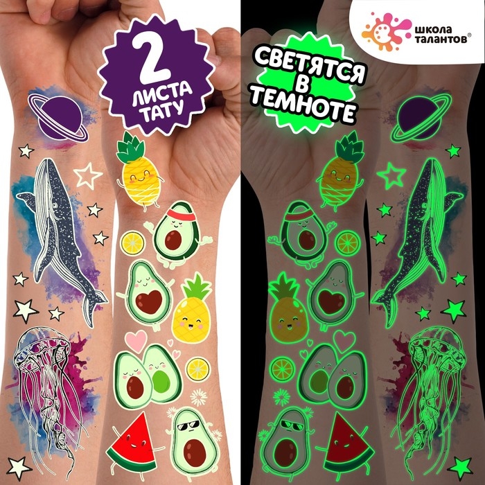Набор «Детские татуировки», светятся в темноте, 2 листа