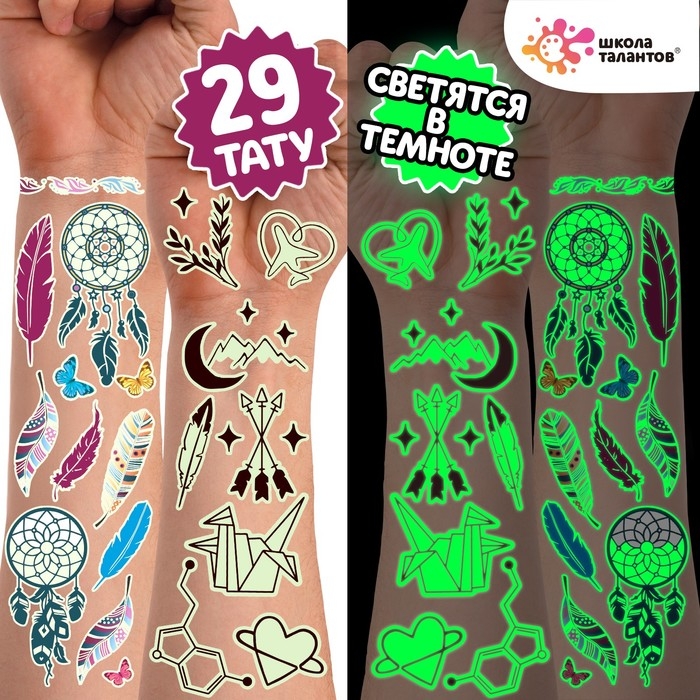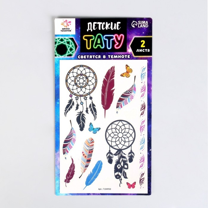 Набор «Детские татуировки», светятся в темноте, 2 листа