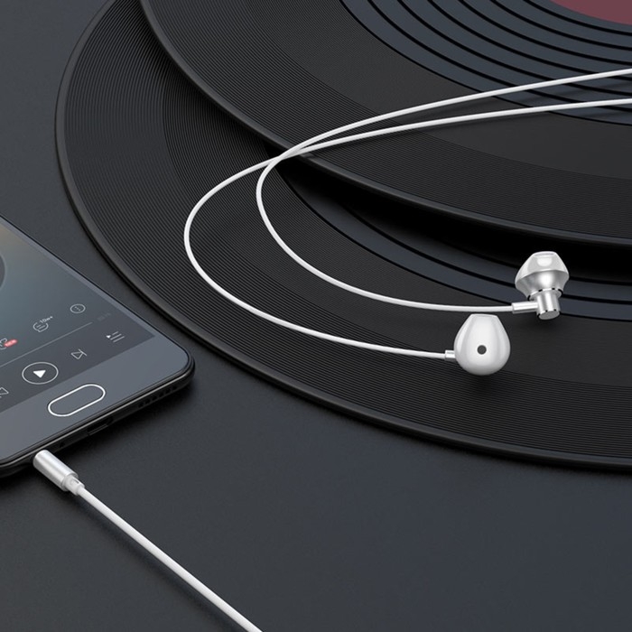 Наушники Hoco M75, проводные, вкладыши, микрофон, Jack 3.5 мм, 1.2 м, серебристые