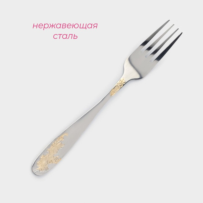 Вилка столовая «Росинка», длина 20 см, толщина 1,8 мм, цвет серебряный