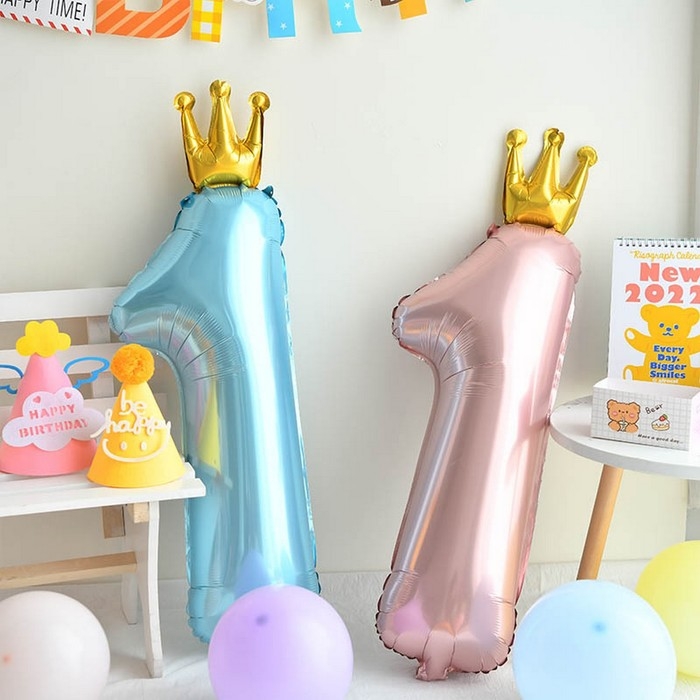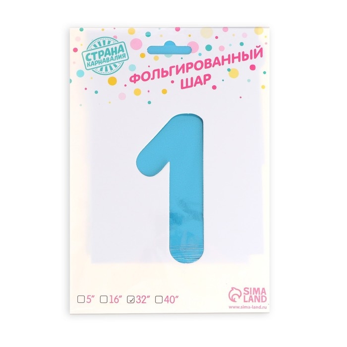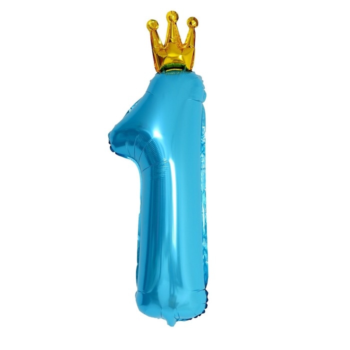 Шар фольгированный 32" «Цифра 1 с короной», цвет голубой