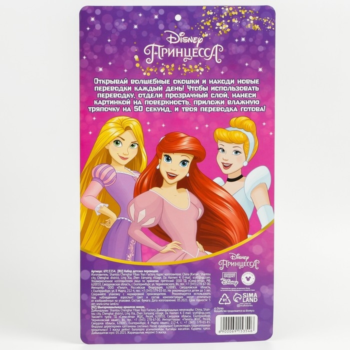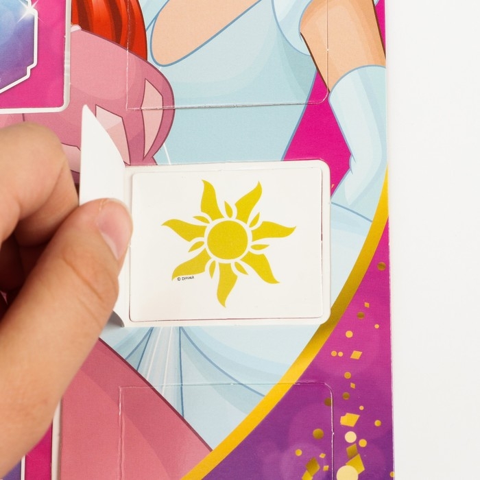 Адвент-календарь «Рапунцель, Ариель, Золушка», с детскими татуировками — 18 шт., Принцессы Disney