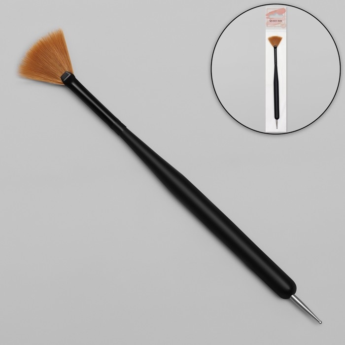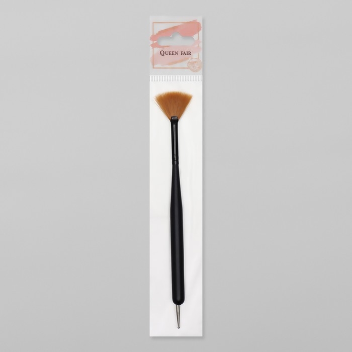 Кисть-дотс для дизайна ногтей, веерная, 15 см, цвет матовый чёрный