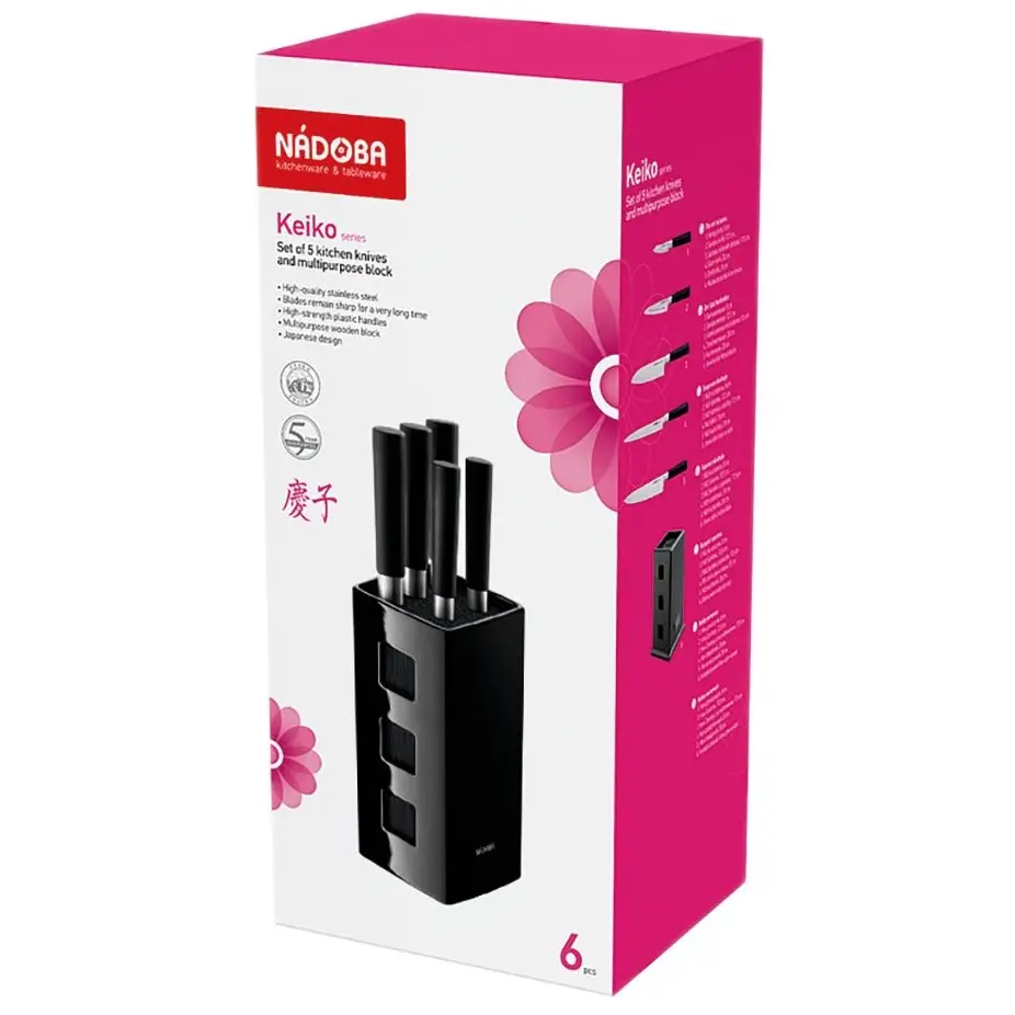 Набор из 5 кухонных ножей в оригинальной подставке из керамики станет не только помощником на кухне, но и ее главным украшением. Внутри блока находятся пластиковые волокна, которые позволяют хранить ножи в произвольном порядке и различном количестве, они не тупят лезвия и легко моются.В наборе: