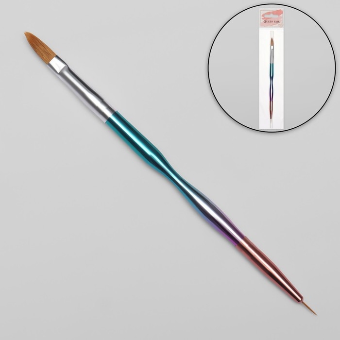 Кисть для наращивания и дизайна ногтей, двусторонняя, лепесток/точечная, 18 см, цвет радужный