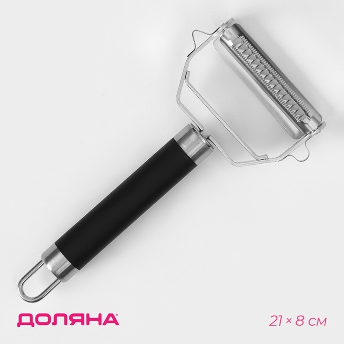 Овощечистка Доляна Venus, 18,5 см, ручка soft-touch, цвет чёрный