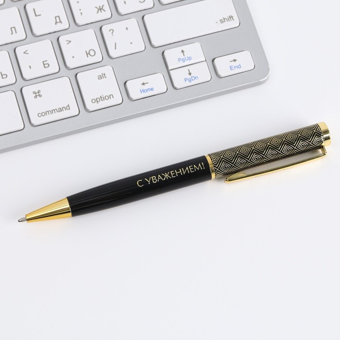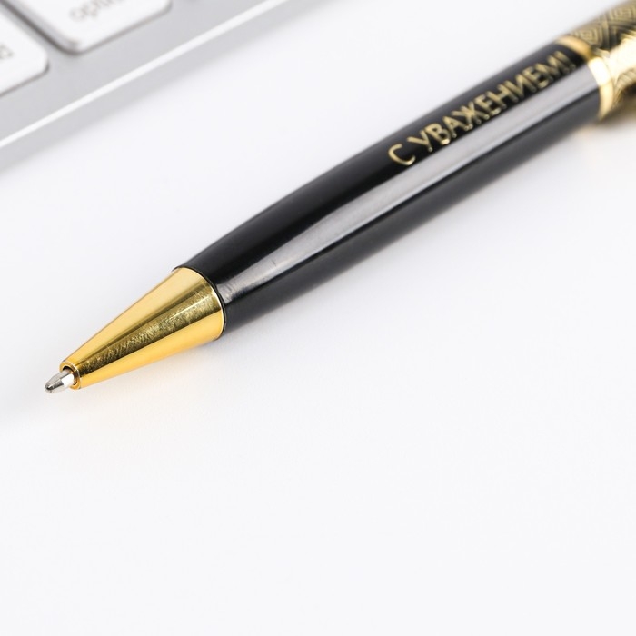 Ручка металлическая в тубусе «С Уважением!», синяя паста