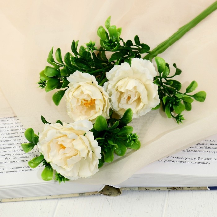 Цветы искусственные"Пион ветка" d-6 см 36 см, молочный