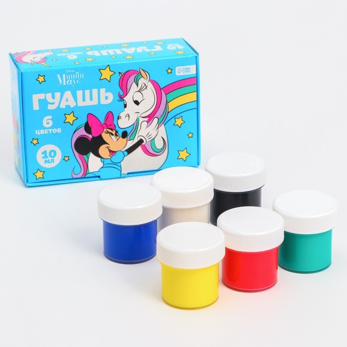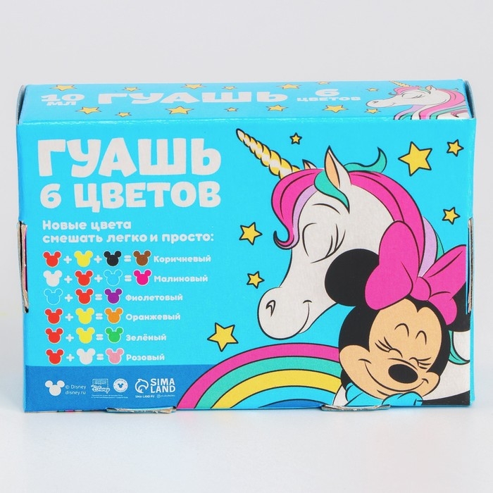 Гуашь 6 цветов по 10 мл «Единорог», Минни Маус