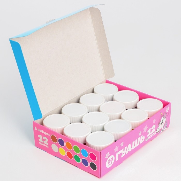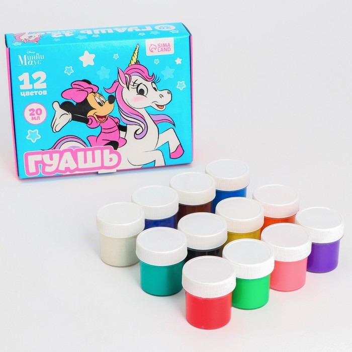 Гуашь, 12 цветов х 20 мл, "Единорог", Минни Маус