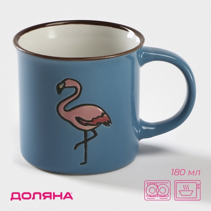 Кружка керамическая Доляна «Фламинго», 180 мл, цвет синий