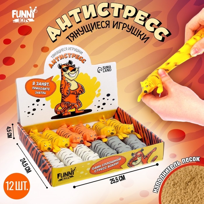 Мялка антистресс тянучка «Тигр», с песком, цвета МИКС, в шоубоксе