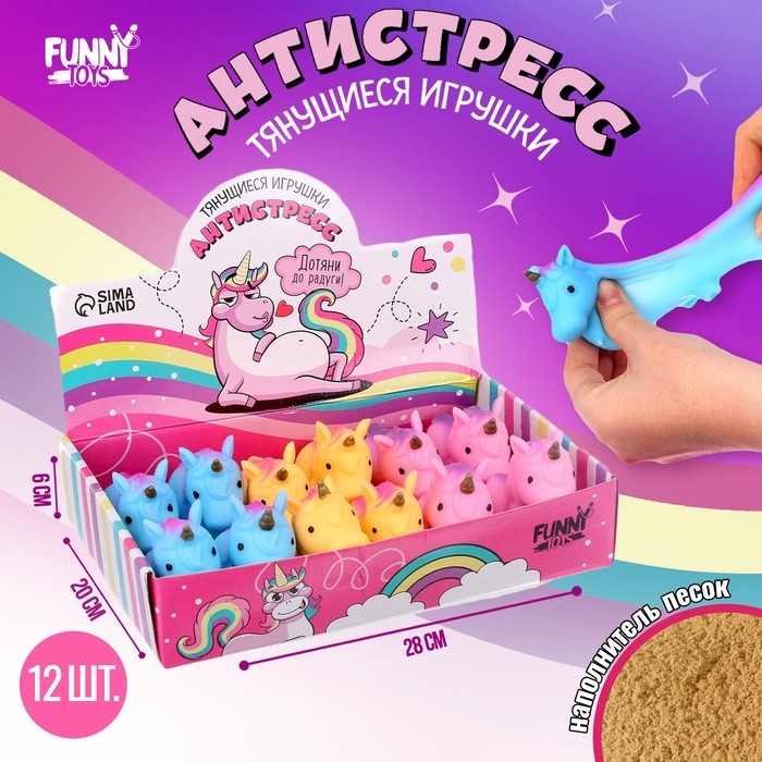 Мялка антистресс тянучка «Единорог», с песком, цвета МИКС, в шоубоксе