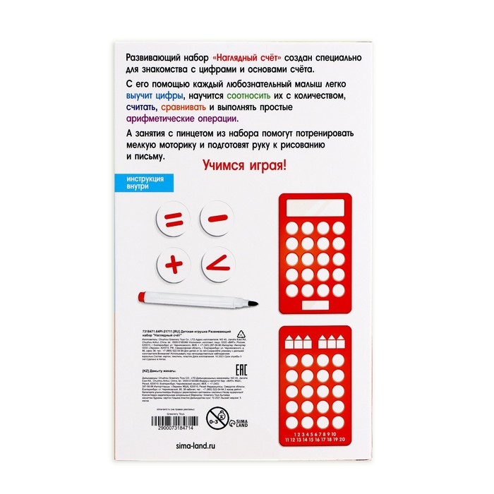 Обучающий набор «Наглядный счёт» познакомит малыша с цветами, цифрами. Ребёнок научится считать и выполнять много разных логических задачек.