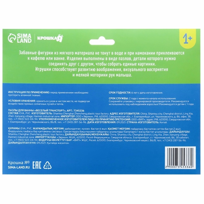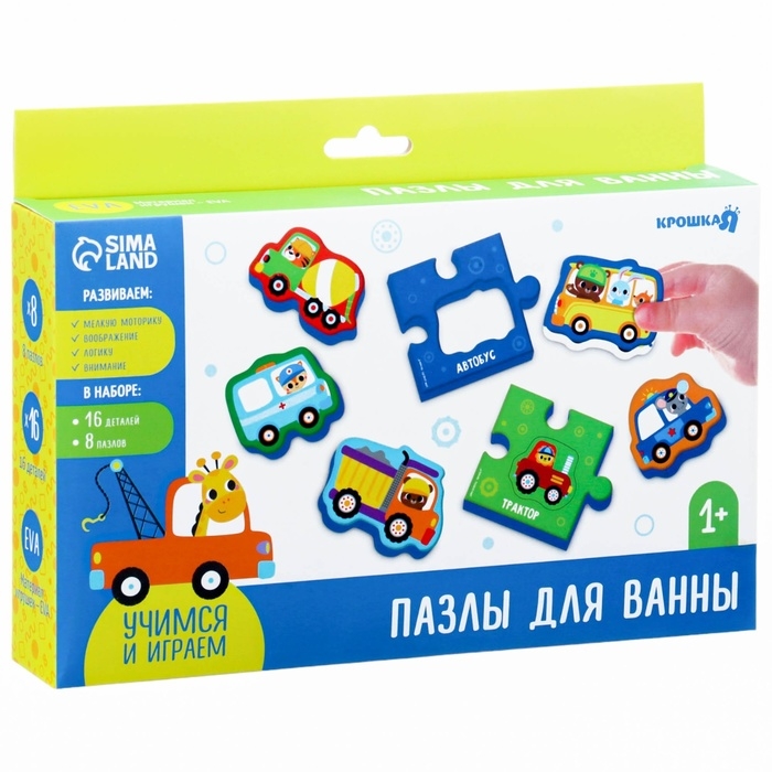 Мягкий пазл для малышей «Веселый транспорт», 16 деталей, Крошка Я