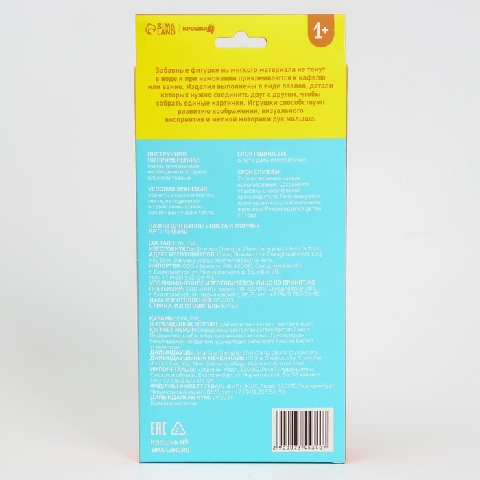 Мягкий пазл для малышей «Цвета и формы», 8 пазлов, Крошка Я