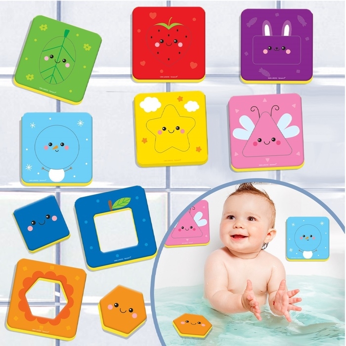 Забавные игрушки из мягкого материала не тонут в воде и при намокании приклеиваются к кафелю или ванне.