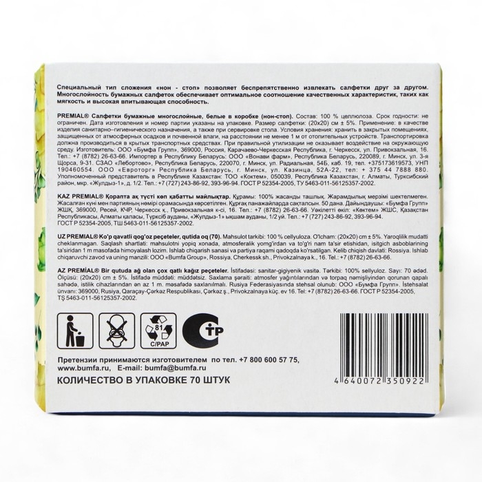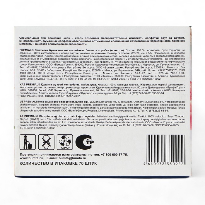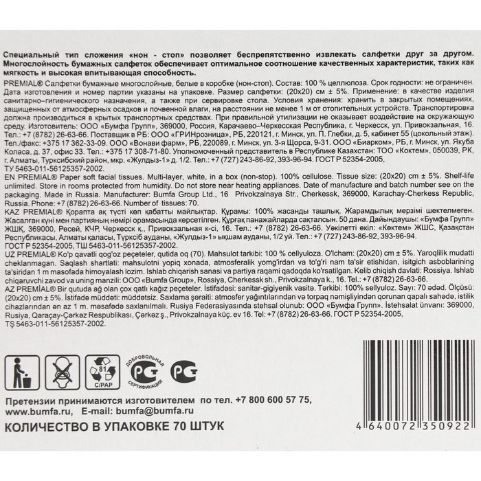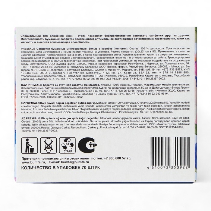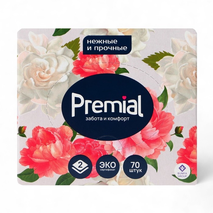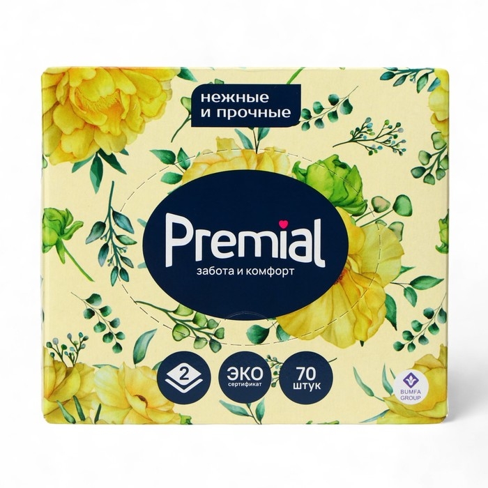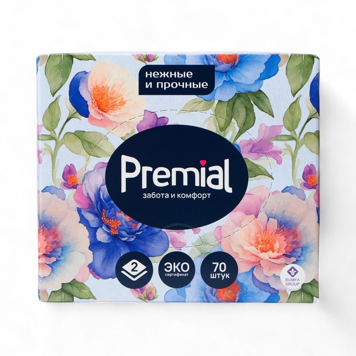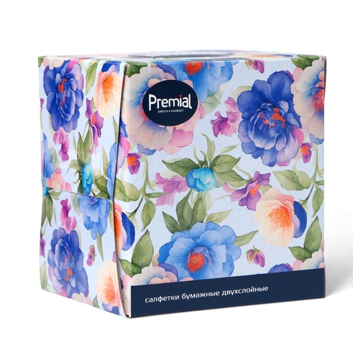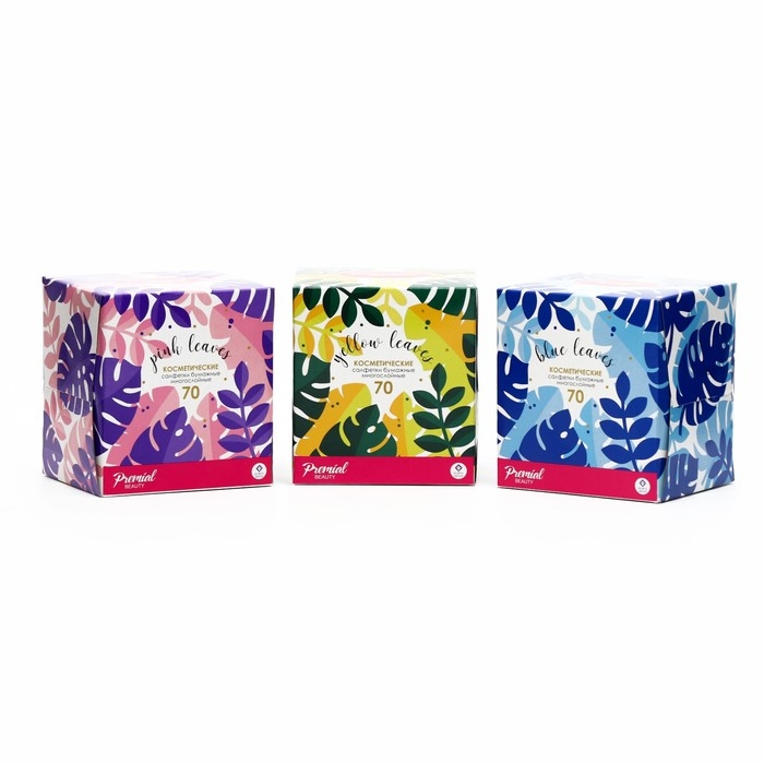 Салфетки «Premial» косметические 2-слойные в коробке Нон стоп, 70 шт МИКС