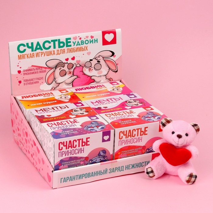 Мягкая игрушка «Счастье приносин», медведь, цвета МИКС, в шоубоксе